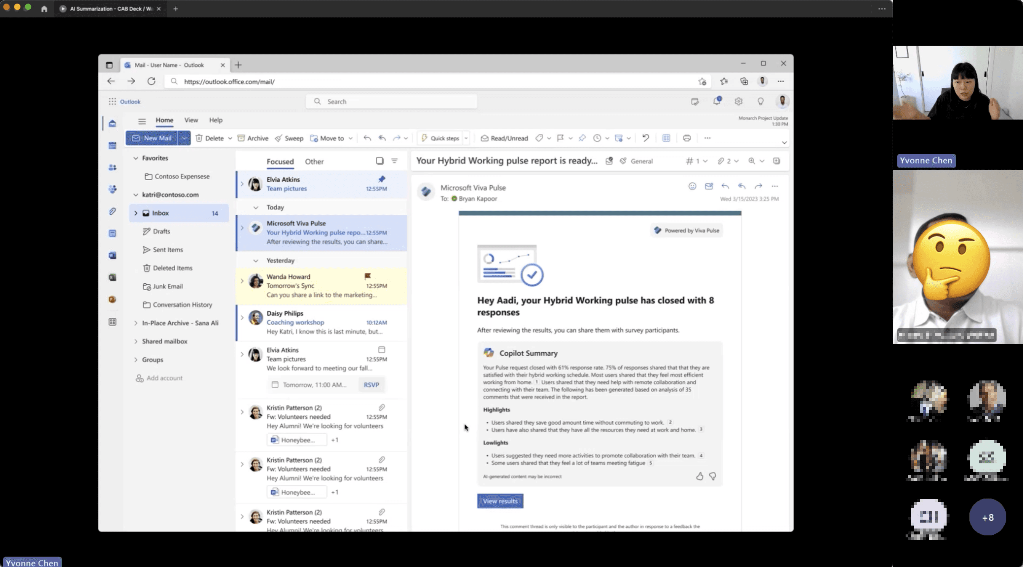 Managers loved getting honest, open-ended feedback in Viva Pulse, but struggled to turn raw responses into meaningful action. To support trust, efficiency, and transparency at scale, I led the design of Pulse’s first AI-powered summarization feature. This feature gives authors a clear, shareable summary of their report, reducing time to insight and making it easier to acknowledge their teams.